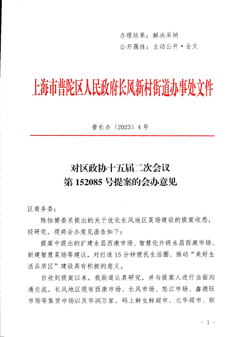 陈怡贇委员提出的关于优化长风地区菜场建设的提案收悉,经研究,现将会办意见函告如下: