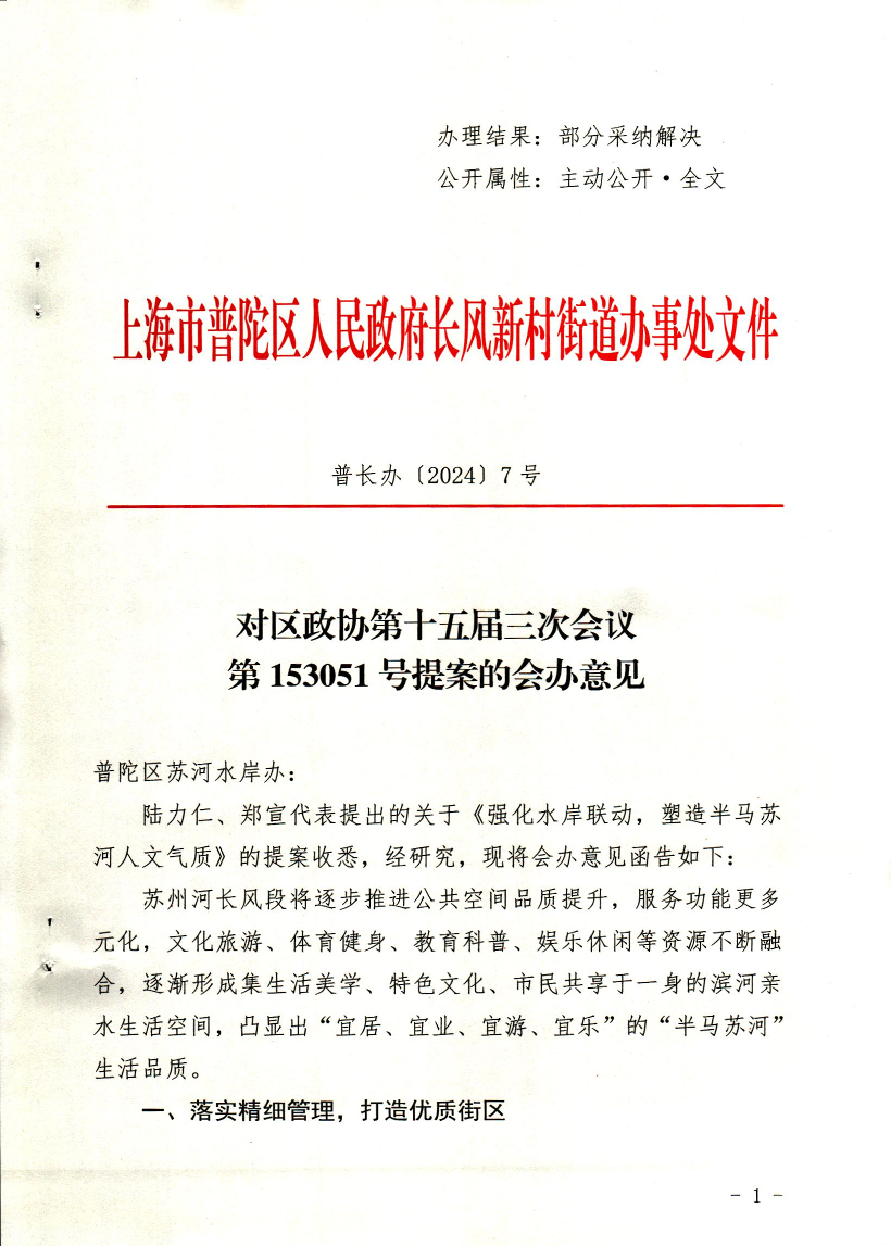 陆力仁、郑宣代表提出的关于《强化水岸联动,塑造半马苏河人文气质》的提案收悉,经研究,现将会办意见函告如下: