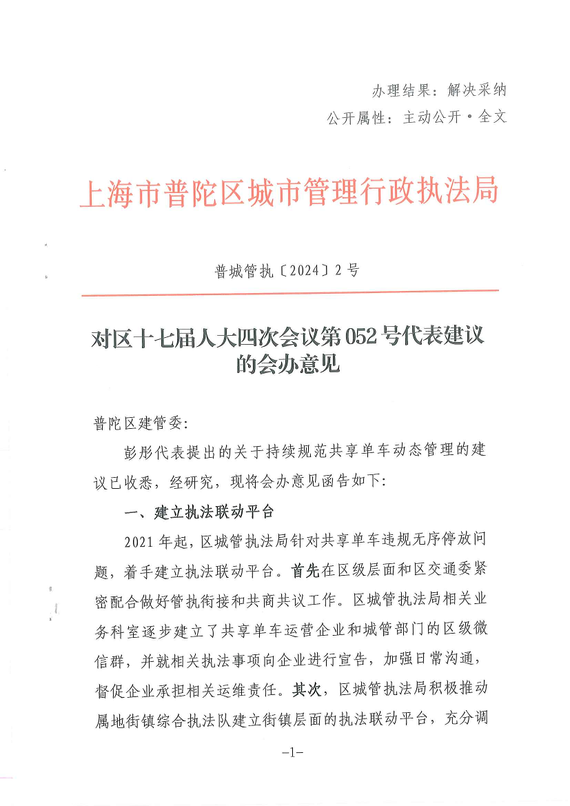 彭彤代表提出的关于持续规范共享单车动态管理的建议已收悉,经研究,现将会办意见函告如下: