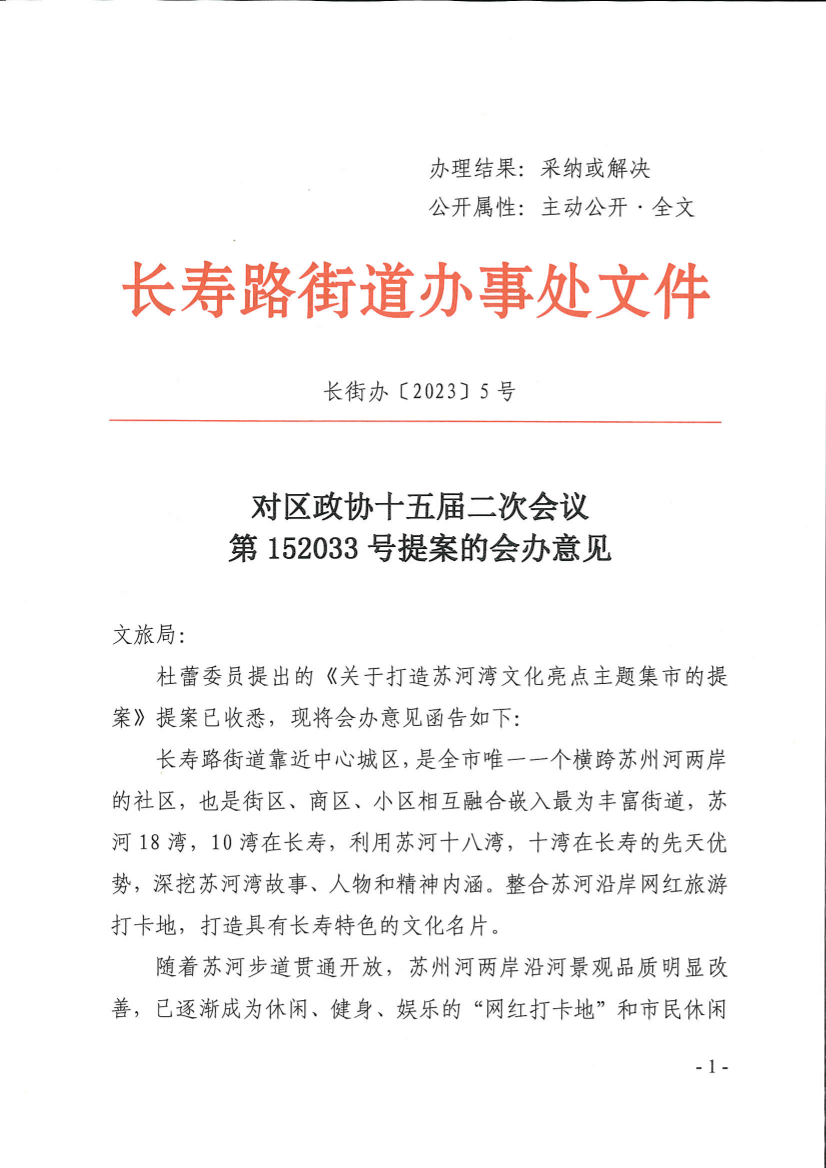 杜蕾委员提出的《关于打造苏河湾文化亮点主题集市的提案》提案已收悉,现将会办意见函告如下:
