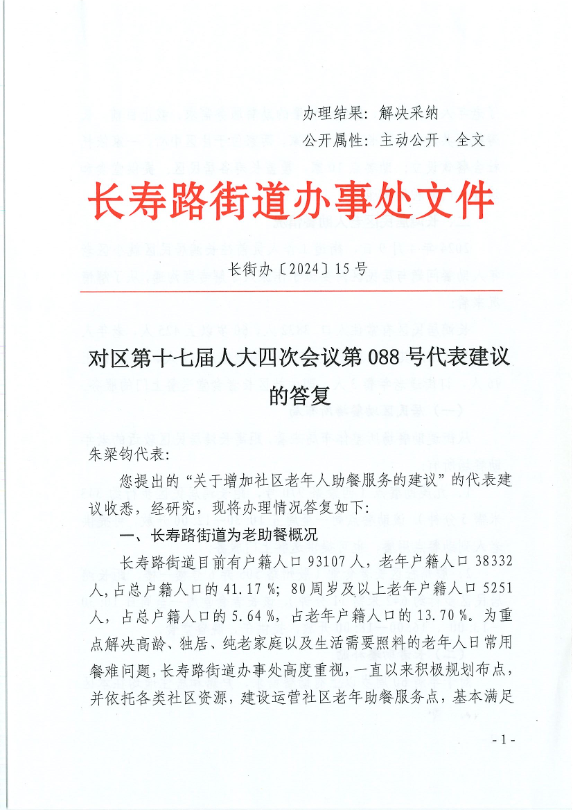 您提出的“关于增加社区老年人助餐服务的建议”的代表建议收悉,经研究,现将办理情况答复如下: