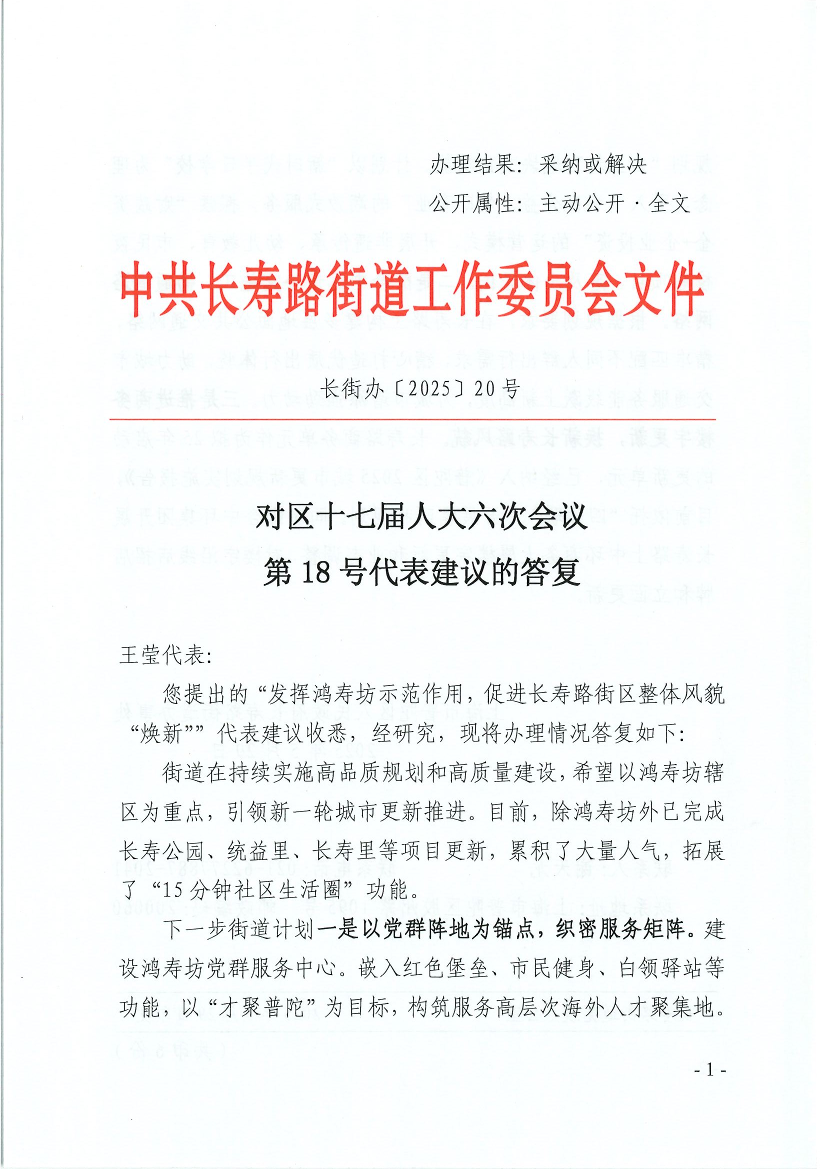 您提出的“发挥鸿寿坊示范作用,促进长寿路街区整体风貌“焕新””代表建议收悉,经研究,现将办理情况答复如下: