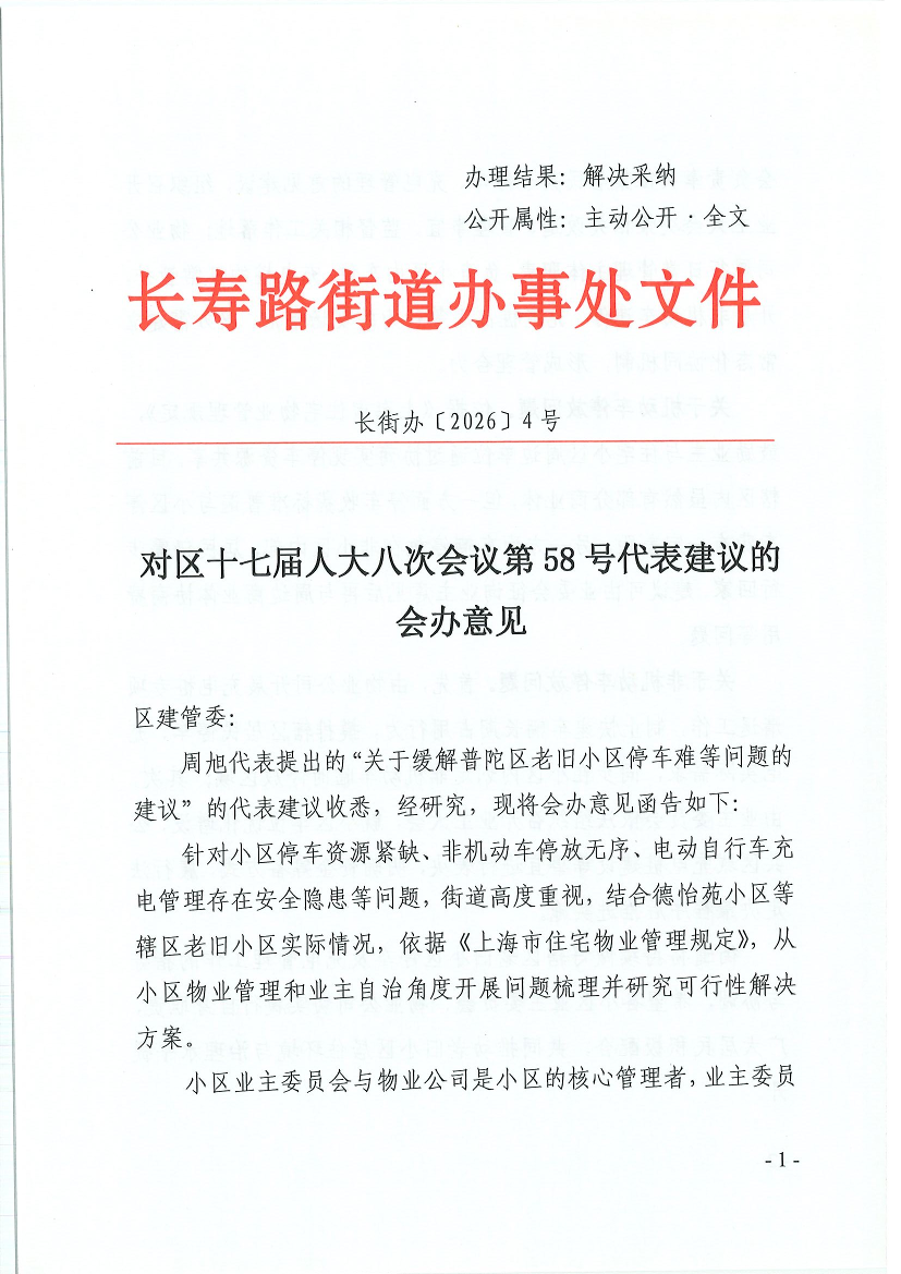 周旭代表提出的“关于缓解普陀区老旧小区停车难等问题的建议”的代表建议收悉,经研究,现将会办意见函告如下: