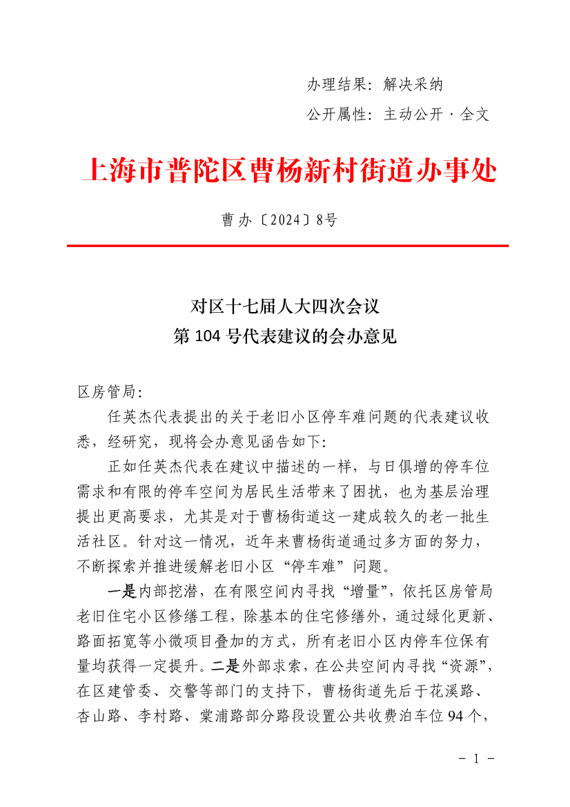 任英杰代表提出的关于老旧小区停车难问题的代表建议收悉,经研究,现将会办意见函告如下: