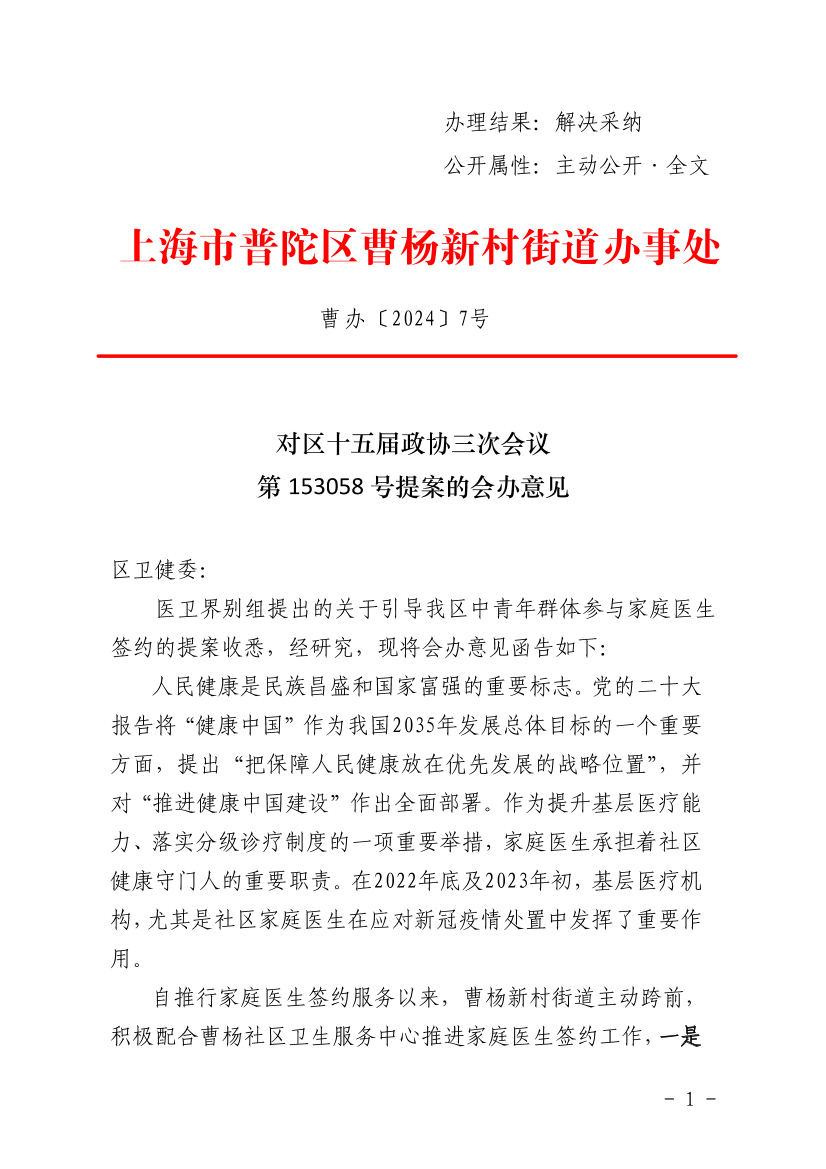 对区十五届政协三次会议第153058号提案的会办意见