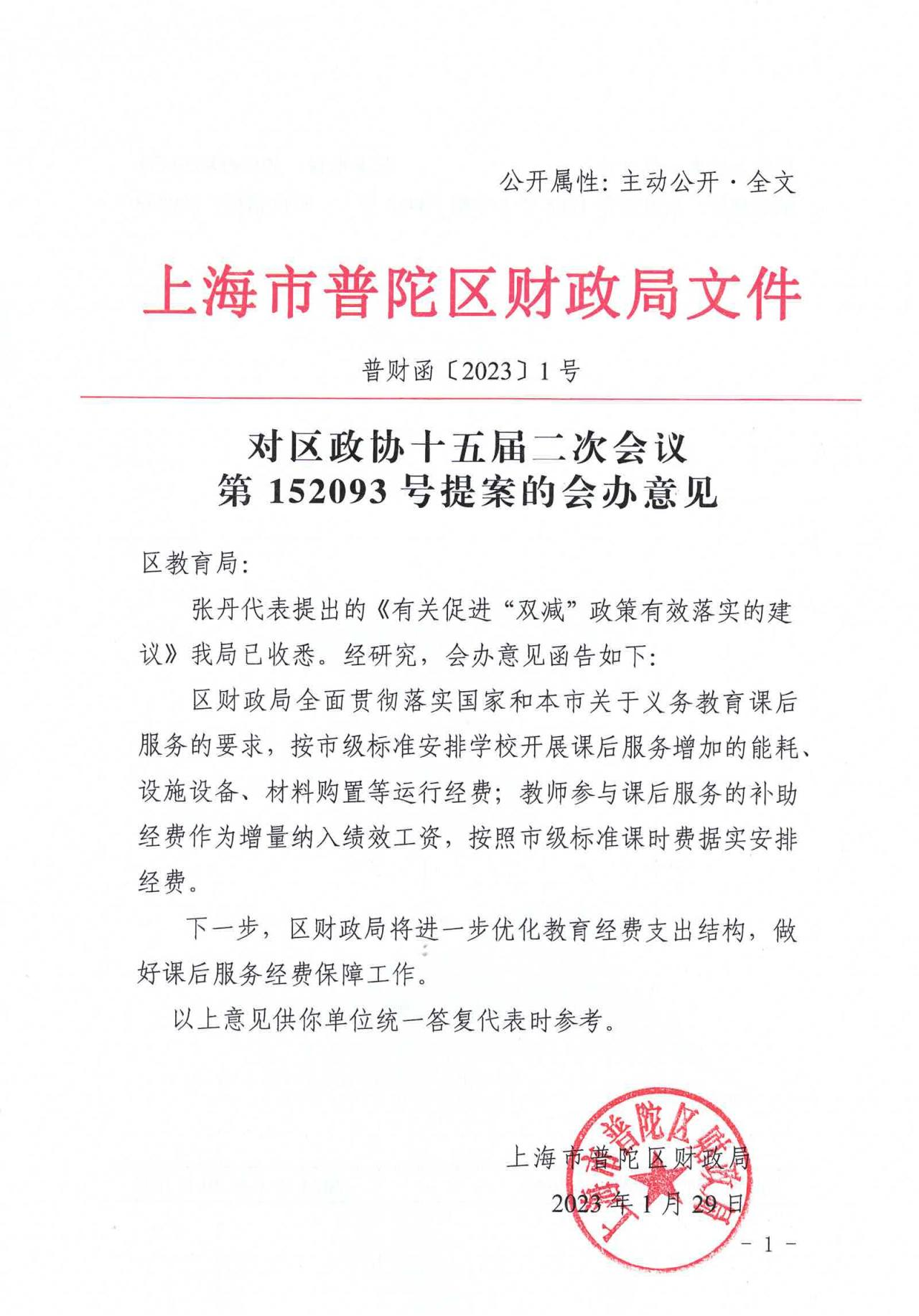 对区政协十五届二次会议第152093号提案的会办意见