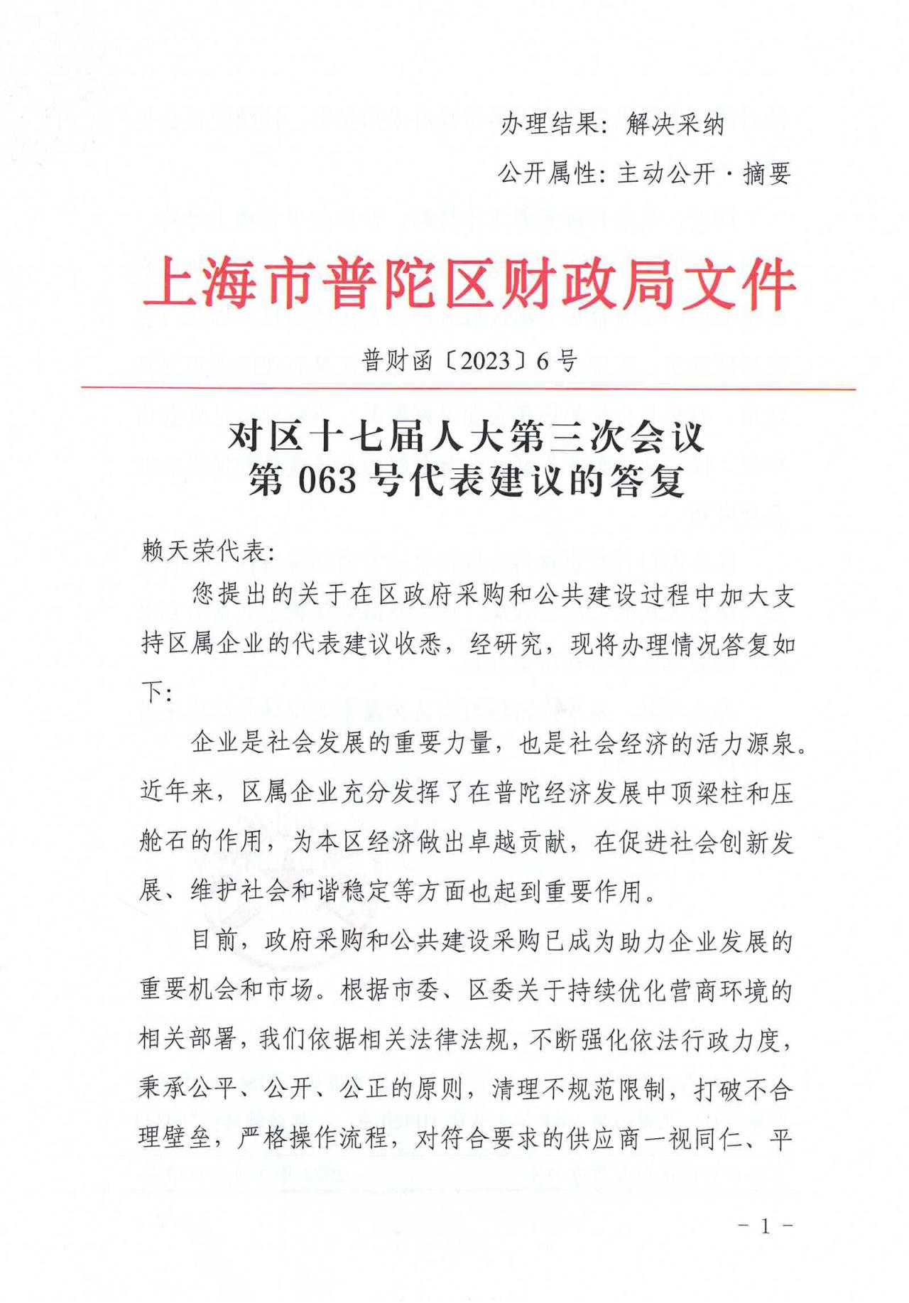 专此答复,诚挚感谢您对我区区属企业发展与政府采购工作的关心支持!