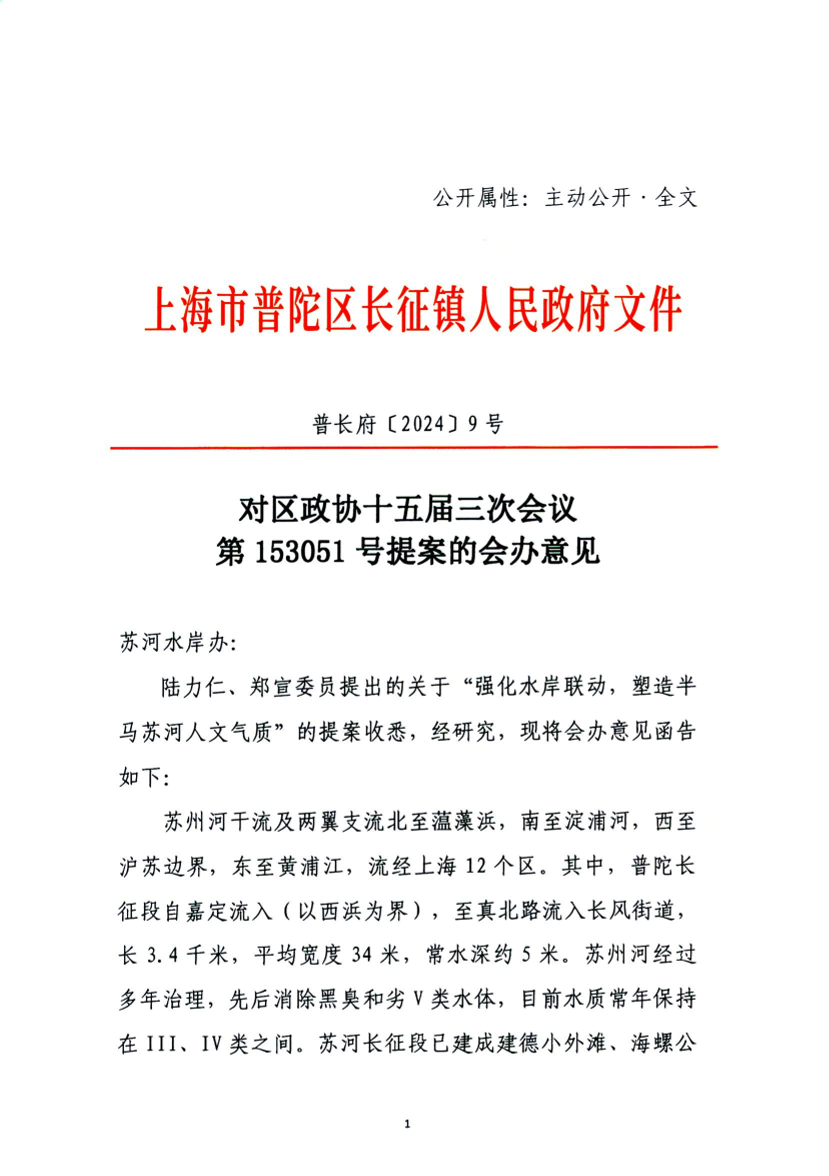 陆力仁、郑宣委员提出的关于“强化水岸联动,塑造半马苏河人文气质”的提案收悉,经研究,现将会办意见函告如下: