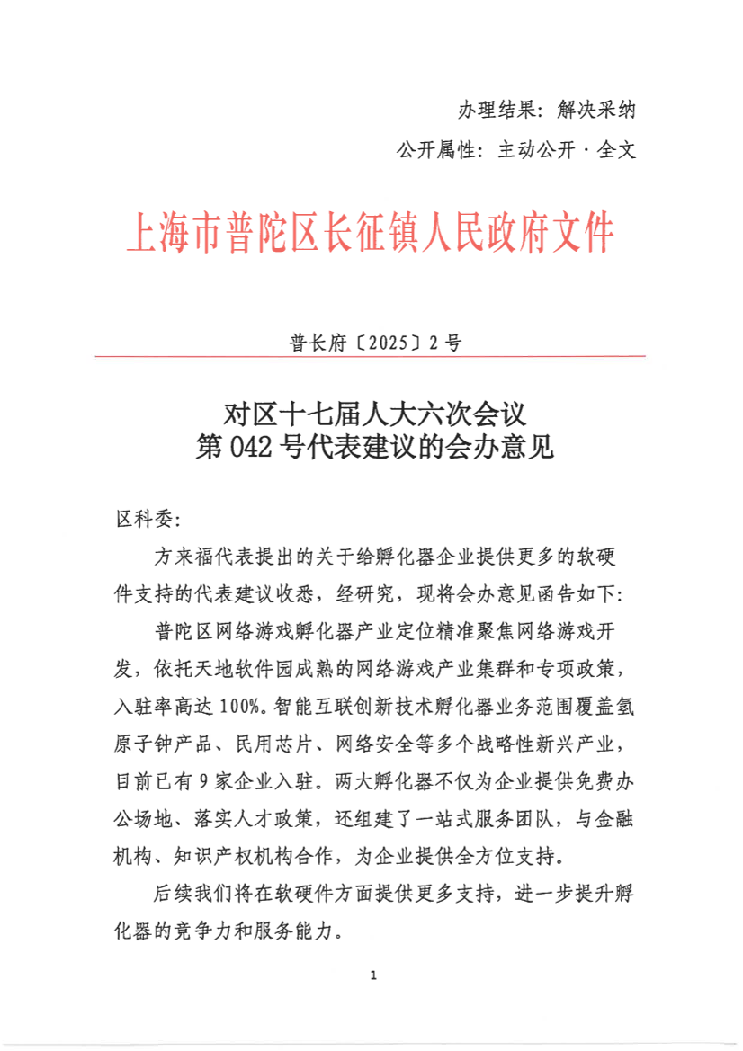 方来福代表提出的关于给孵化器企业提供更多的软硬件支持的代表建议收悉,经研究,现将会办意见函告如下:
