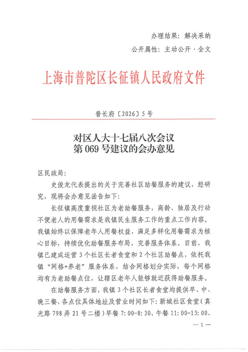 史俊龙代表提出的关于完善社区助餐服务的建议,经研究,现将会办意见函告如下: