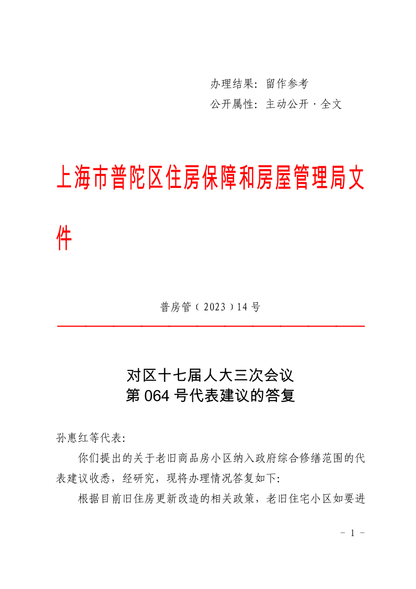 你们提出的关于老旧商品房小区纳入政府综合修缮范围的代表建议收悉,经研究,现将办理情况答复如下: