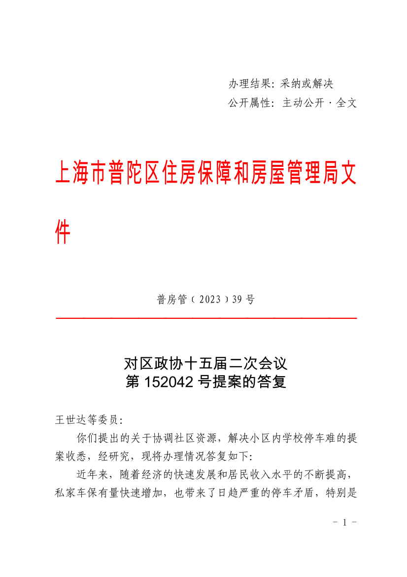 你们提出的关于协调社区资源,解决小区内学校停车难的提案收悉,经研究,现将办理情况答复如下: