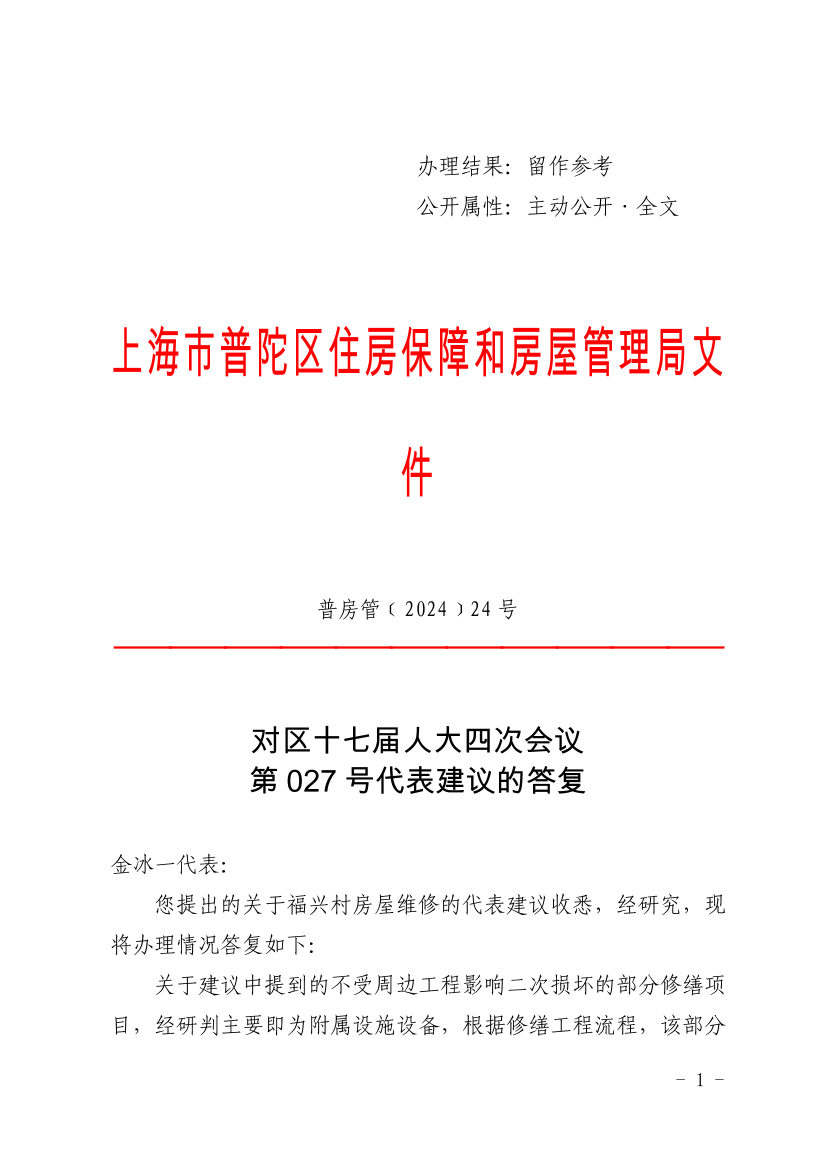 您提出的关于福兴村房屋维修的代表建议收悉,经研究,现将办理情况答复如下: