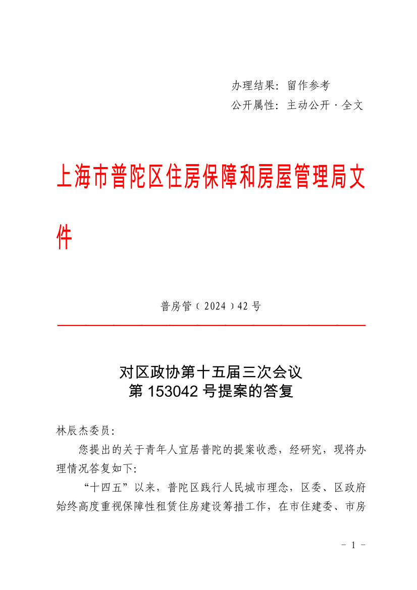 您提出的关于青年人宜居普陀的提案收悉,经研究,现将办理情况答复如下: