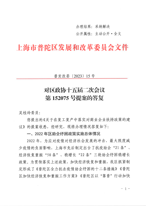 您提出的《关于在复工复产中落实对商业企业扶持政策的建议》的提案收悉,经研究,现将办理情况答复如下: