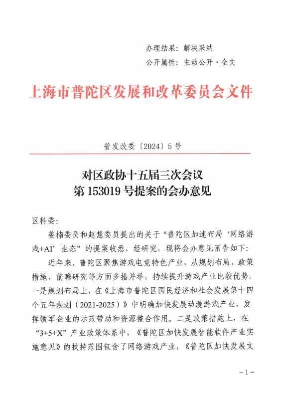 姜楠委员和赵慧委员提出的关于“普陀区加速布局‘网络游戏+AI’生态”的提案收悉,经研究,现将会办意见函告如下: