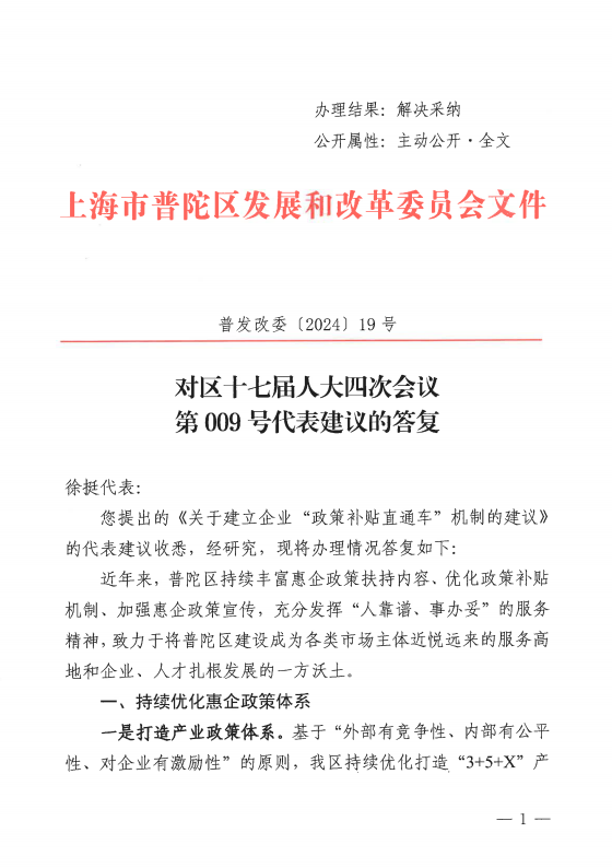 您提出的《关于建立企业“政策补贴直通车”机制的建议》的代表建议收悉,经研究,现将办理情况答复如下: