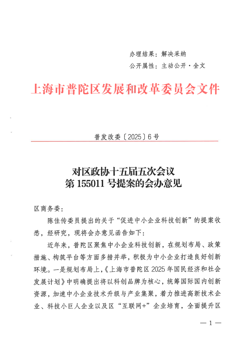陈佳传委员提出的关于“促进中小企业科技创新”的提案收悉,经研究,现将会办意见函告如下: