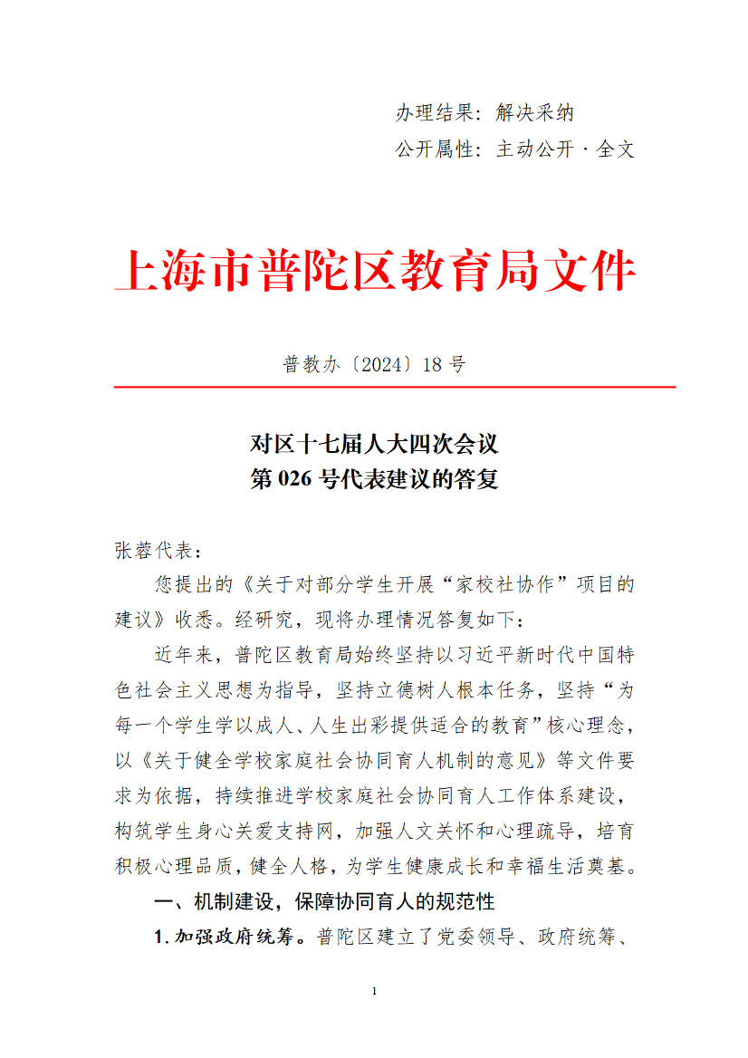 您提出的《关于对部分学生开展“家校社协作”项目的建议》收悉。经研究,现将办理情况答复如下: