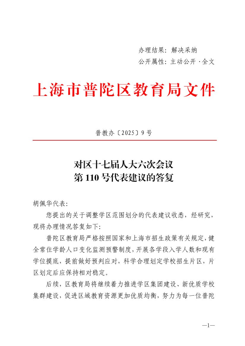您提出的关于调整学区范围划分的代表建议收悉,经研究,现将办理情况答复如下: