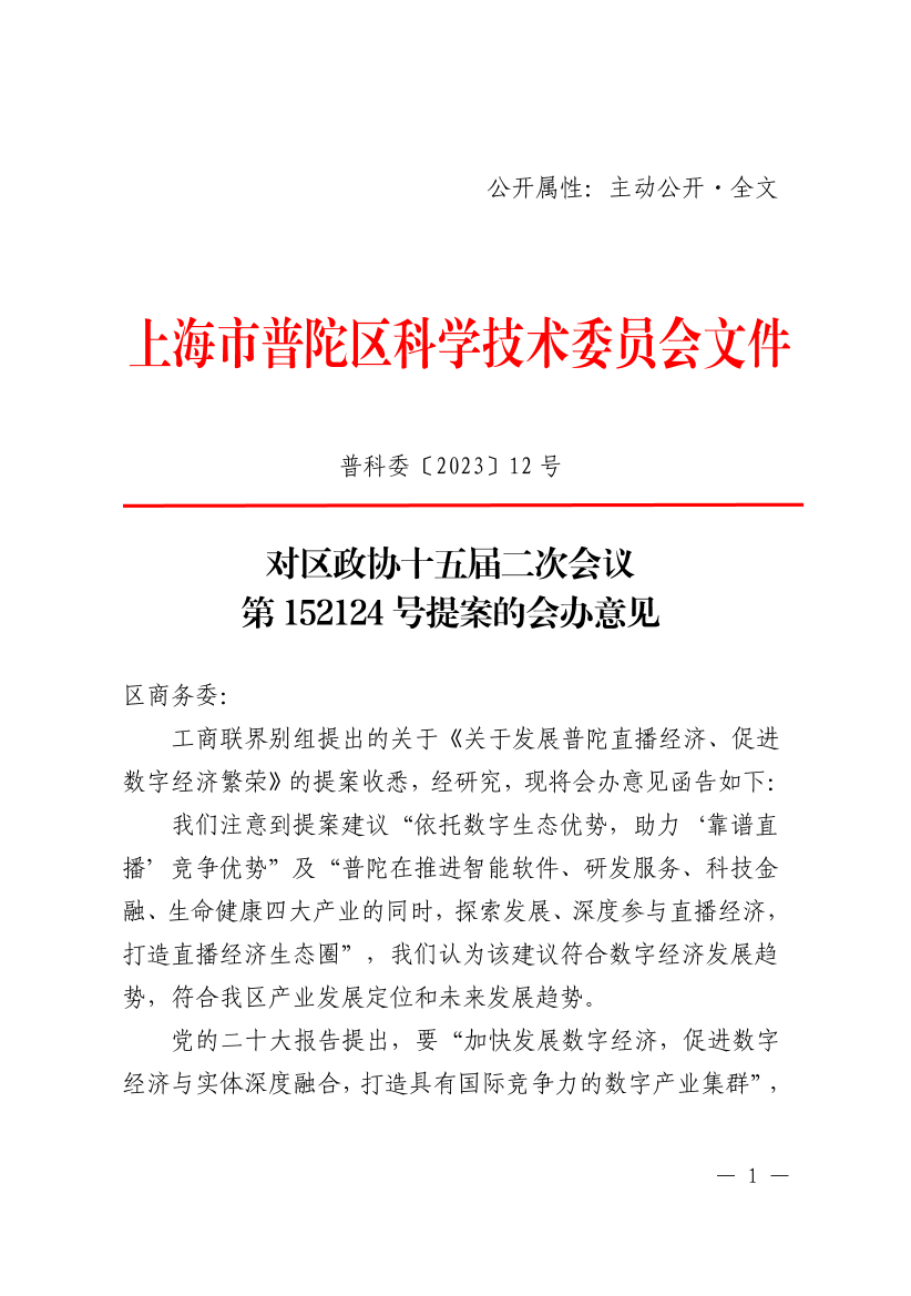我们注意到提案建议“依托数字生态优势,助力‘靠谱直播’竞争优势”及“普陀在推进智能软件、研发服务、科技金融、生命健康四大产业的同时,探索发展、深度参与直播经济,打造直播经济生态圈”,我们认为该建议符合数字经济发展趋势,符合我区产业发展定位和未来发展趋势。