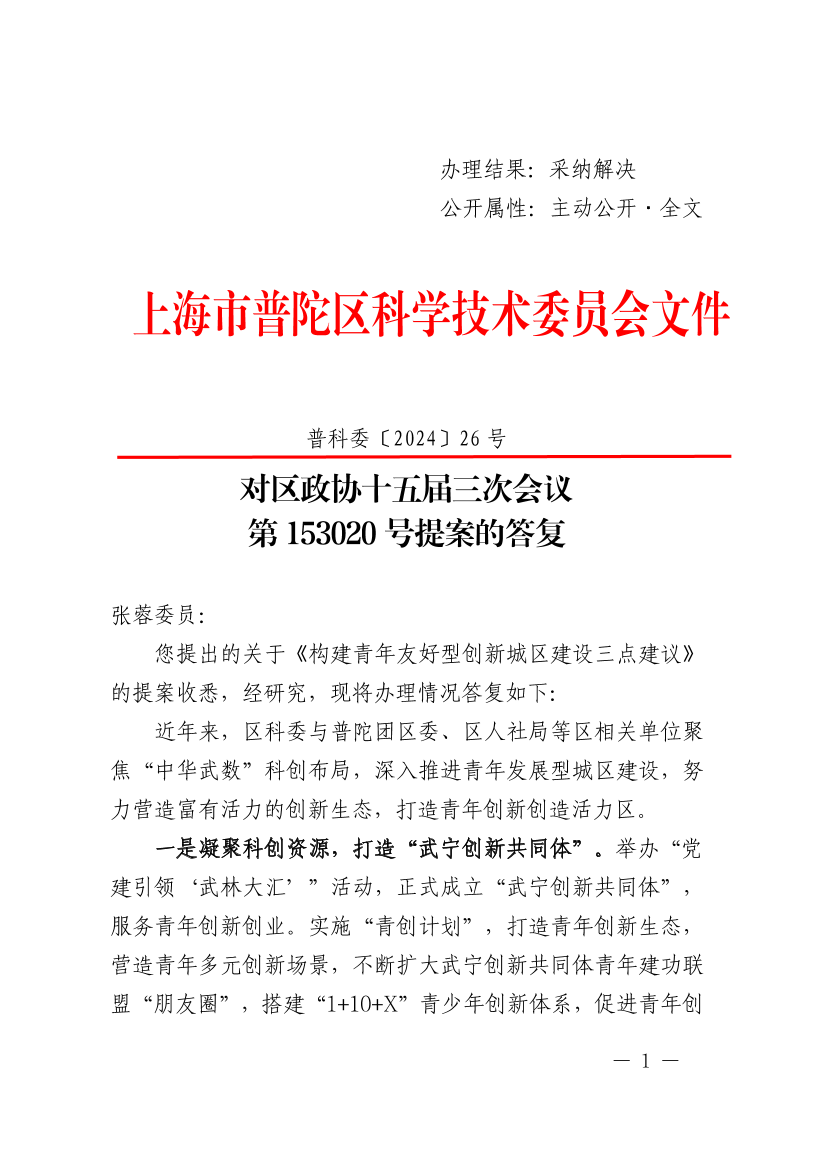 您提出的关于《构建青年友好型创新城区建设三点建议》的提案收悉,经研究,现将办理情况答复如下: