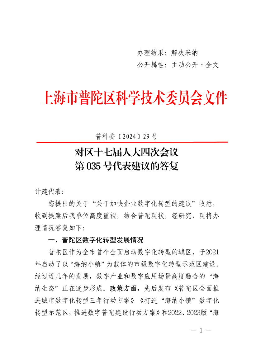 您提出的关于“关于加快企业数字化转型的建议”收悉,收到提案后我单位高度重视,结合普陀现状,经研究,现将办理情况答复如下: