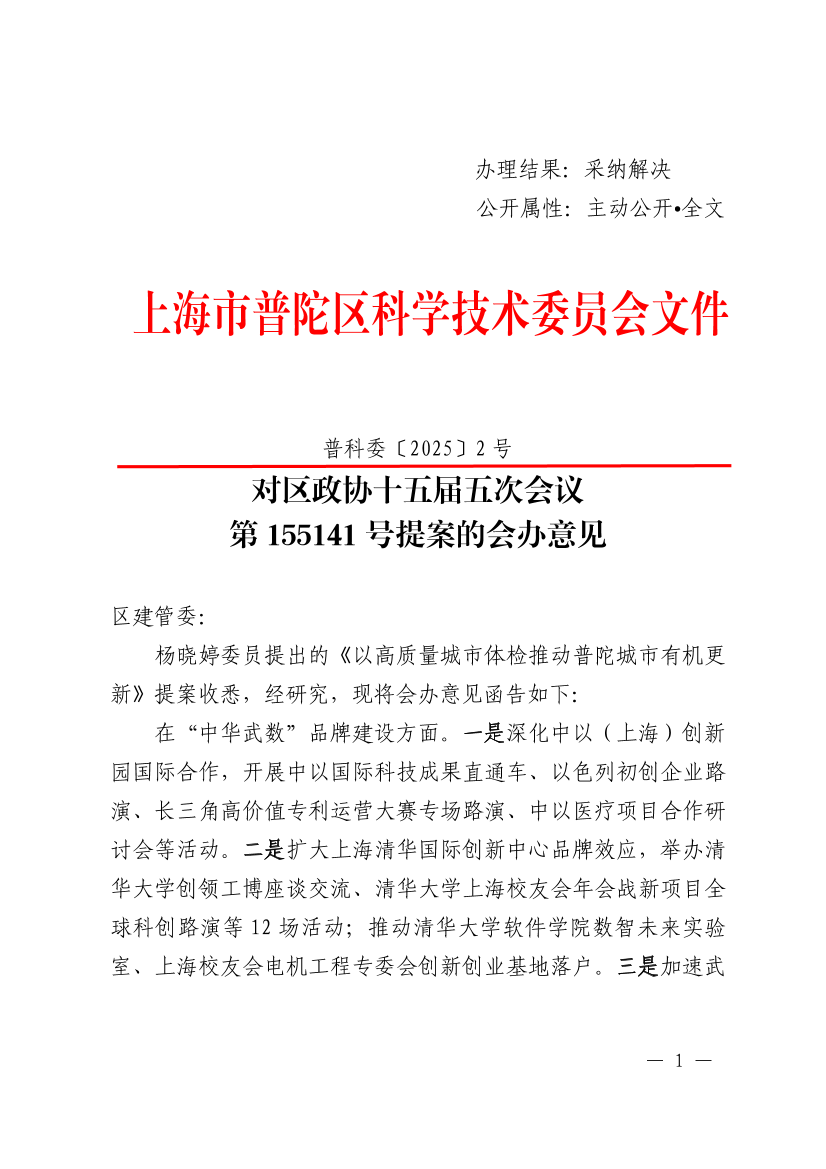 杨晓婷委员提出的《以高质量城市体检推动普陀城市有机更新》提案收悉,经研究,现将会办意见函告如下:
