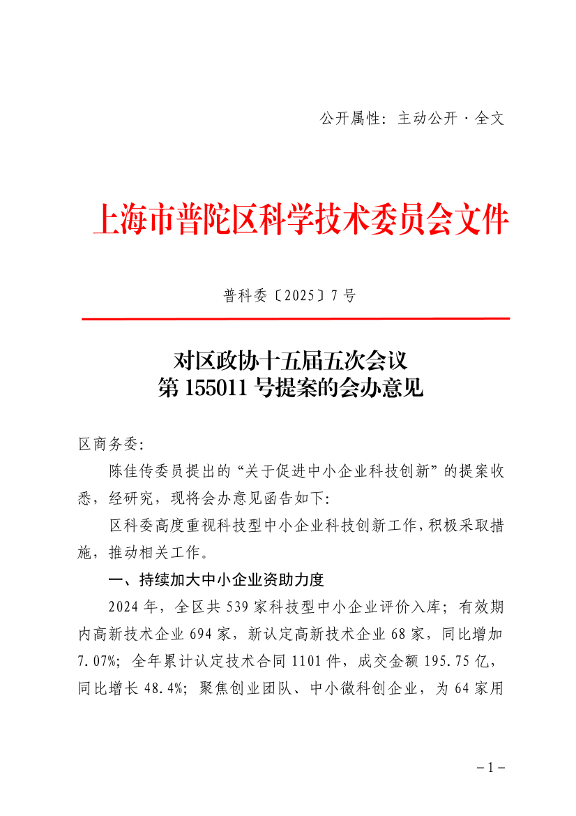 陈佳传委员提出的“关于促进中小企业科技创新”的提案收悉,经研究,现将会办意见函告如下: