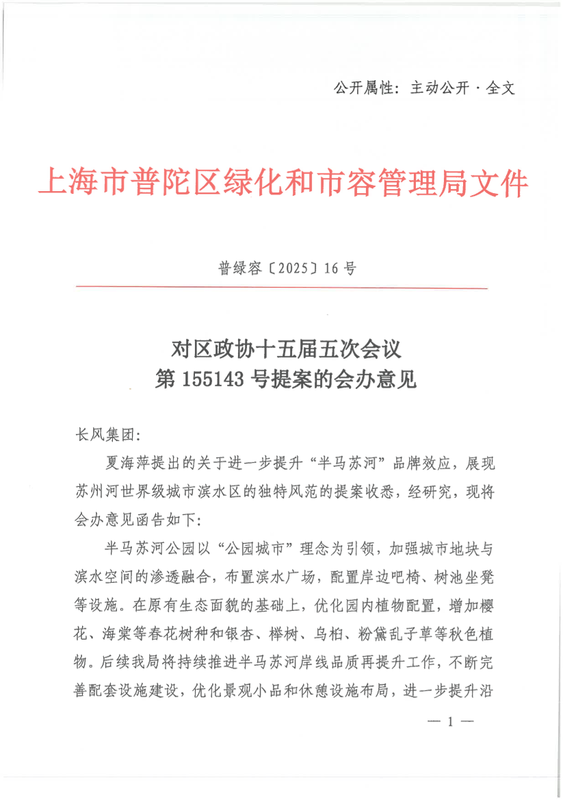 夏海萍提出的关于进一步提升“半马苏河”品牌效应,展现苏州河世界级城市滨水区的独特风范的提案收悉,经研究,现将会办意见函告如下: