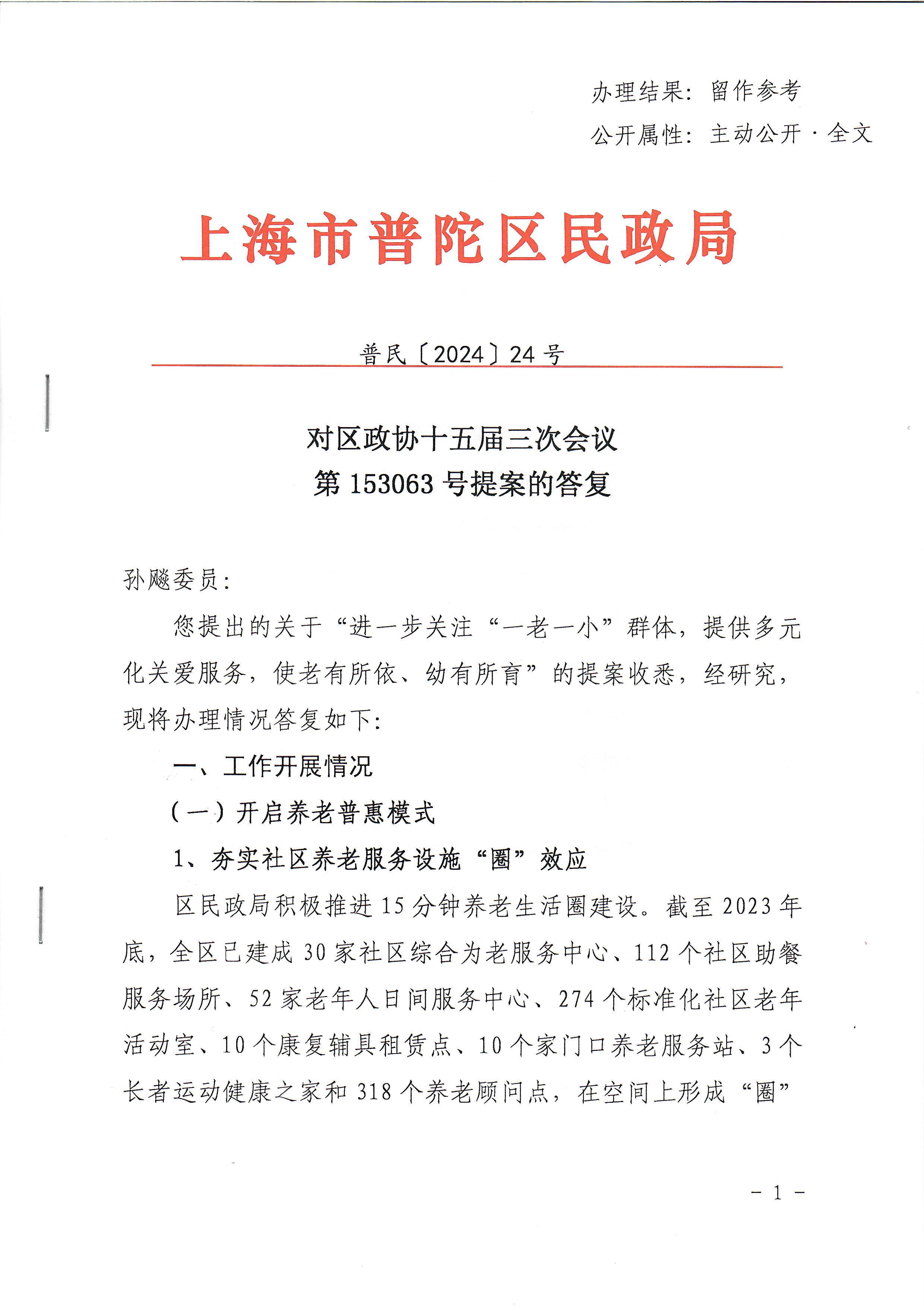 您提出的关于“进一步关注“一老一小”群体,提供多元化关爱服务,使老有所依、幼有所育”的提案收悉,经研究,现将办理情况答复如下:
