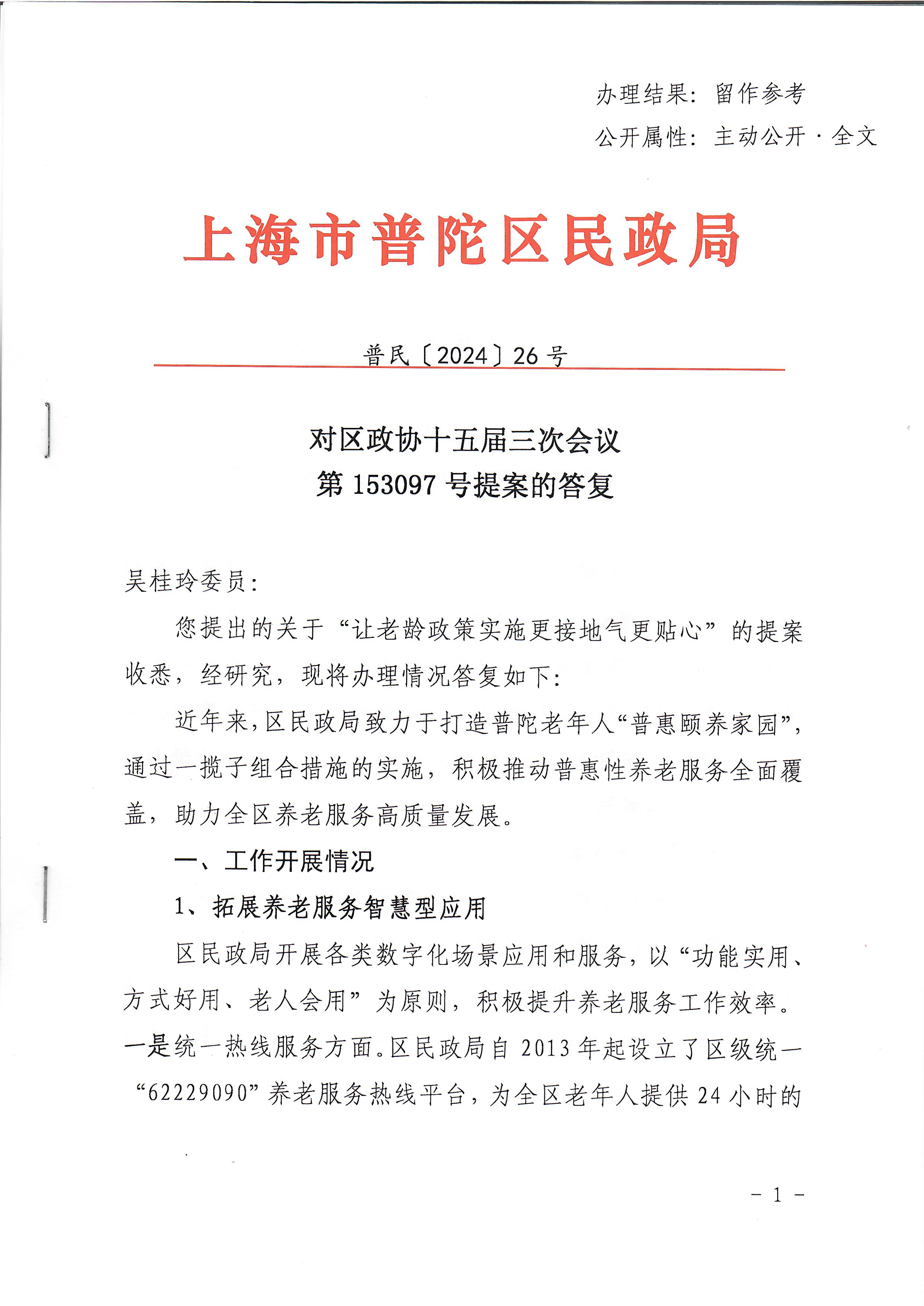 对区政协十五届三次会议第153097号提案的答复