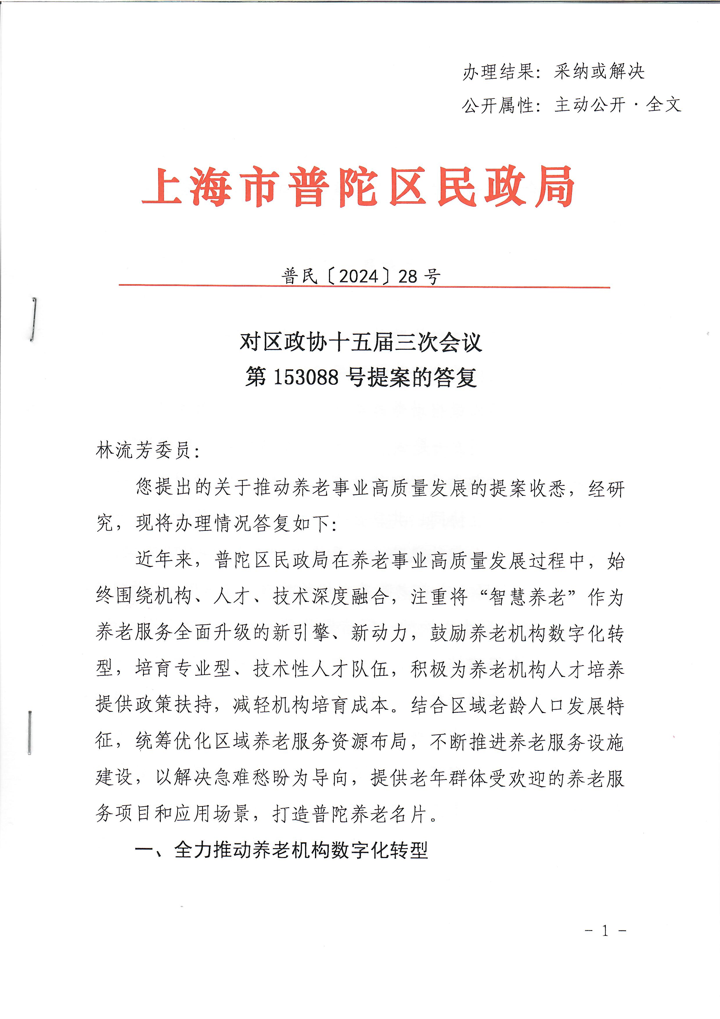 您提出的关于推动养老事业高质量发展的提案收悉,经研究,现将办理情况答复如下: