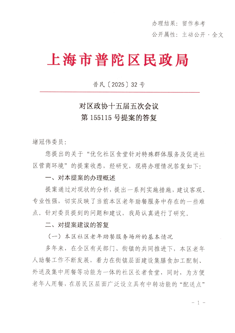 您提出的关于“优化社区食堂针对特殊群体服务及促进社区营商环境”的提案收悉,经研究,现将办理情况答复如下: