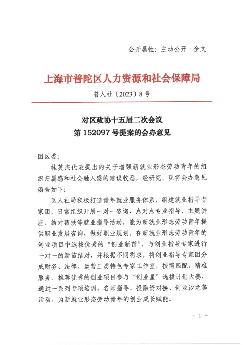 桂英杰代表提出的关于增强新就业形态劳动青年的组织归属感和社会融入感的建议收悉,经研究,现将会办意见函告如下: