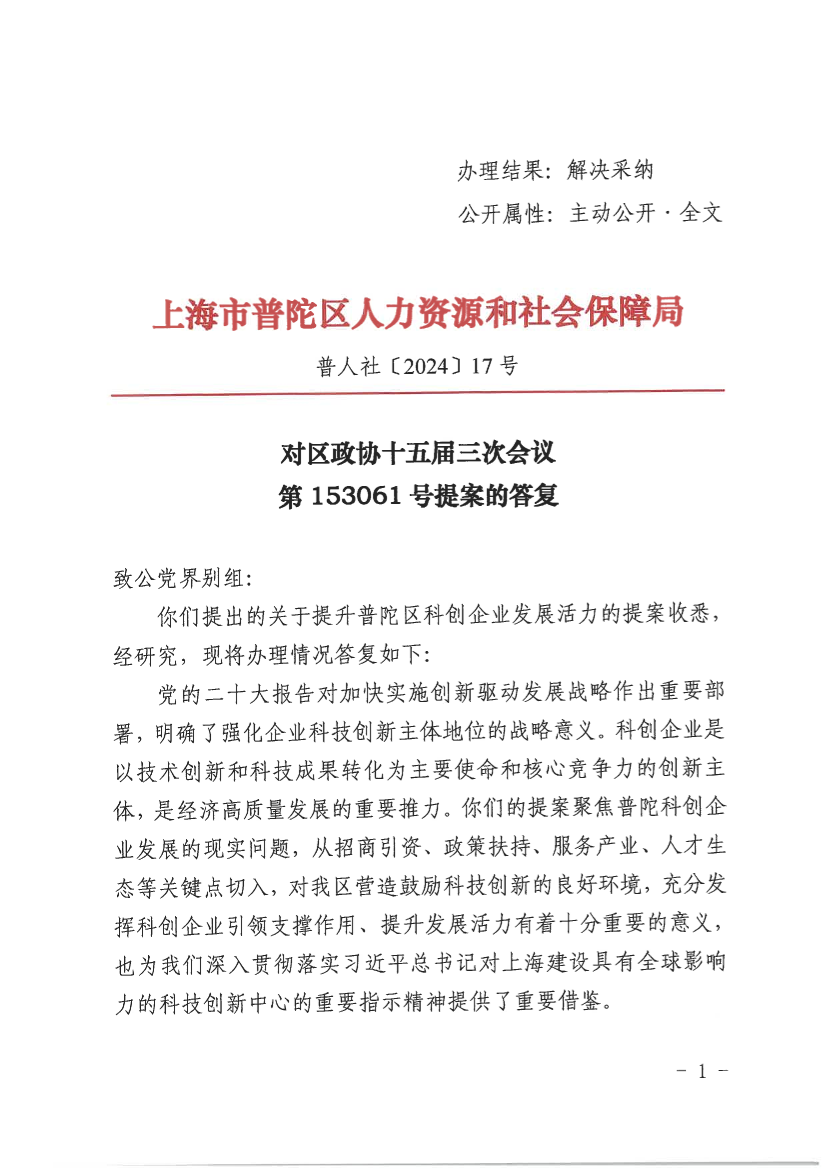 你们提出的关于提升普陀区科创企业发展活力的提案收悉,经研究,现将办理情况答复如下: