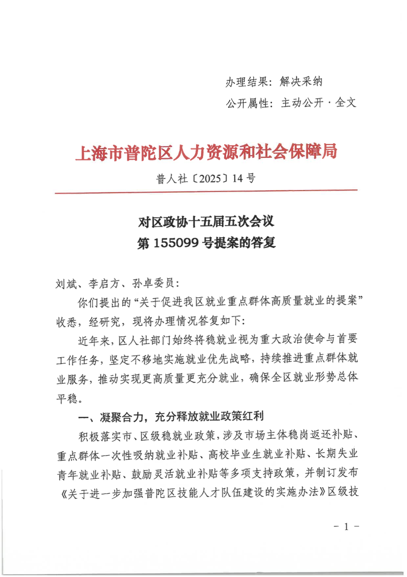 你们提出的“关于促进我区就业重点群体高质量就业的提案”收悉,经研究,现将办理情况答复如下: