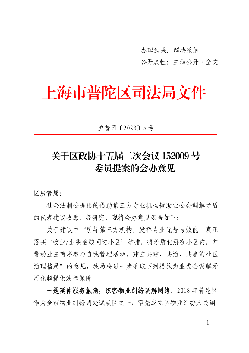关于区政协十五届二次会议152009号委员提案的会办意见