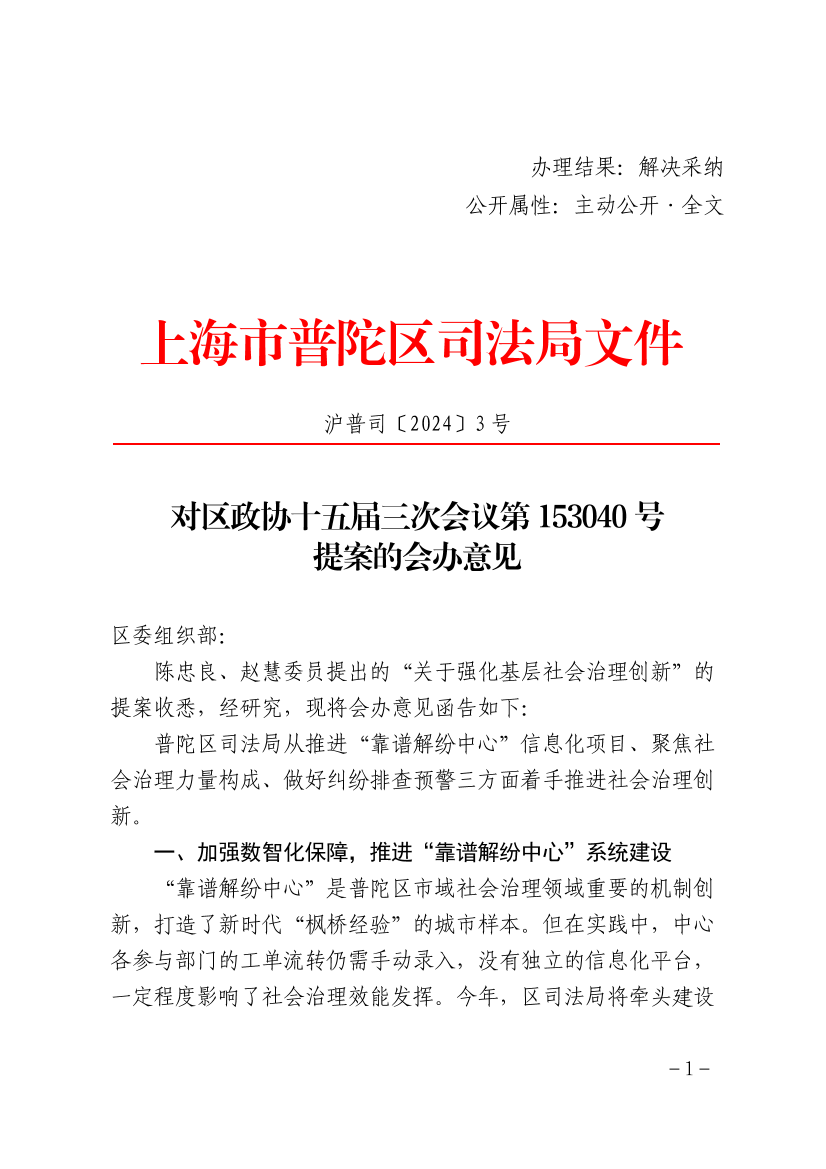 普陀区司法局从推进“靠谱解纷中心”信息化项目、聚焦社会治理力量构成、做好纠纷排查预警三方面着手推进社会治理创新。
