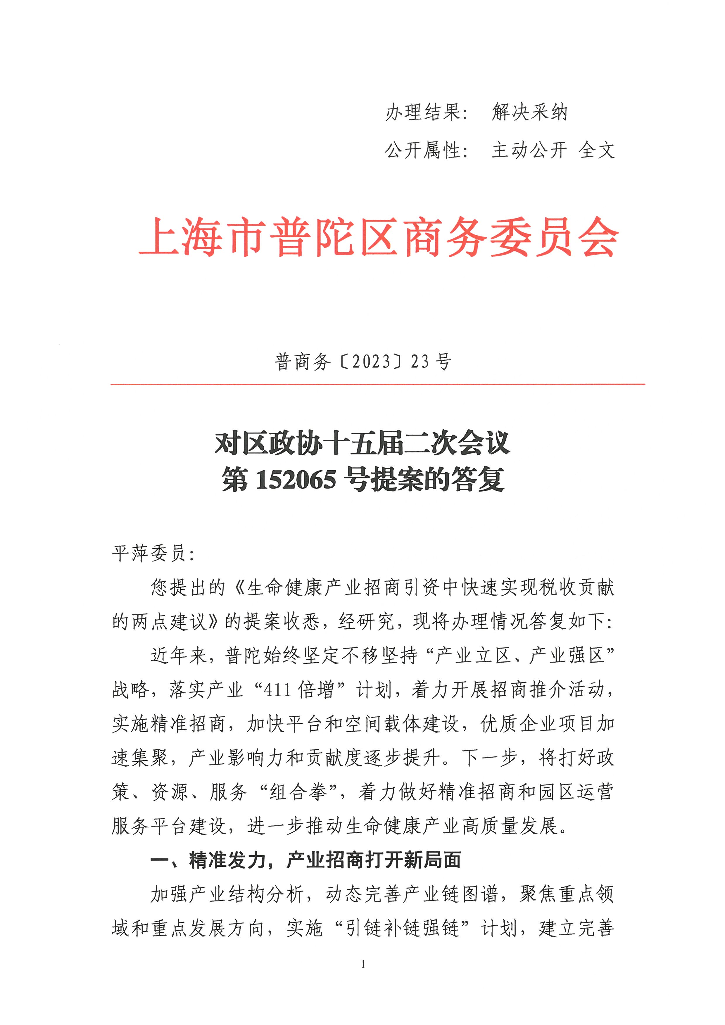 您提出的《生命健康产业招商引资中快速实现税收贡献的两点建议》的提案收悉,经研究,现将办理情况答复如下: