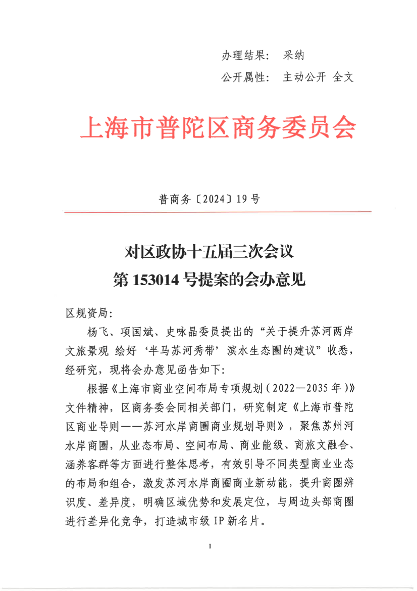 杨飞、项国斌、史咏晶委员提出的“关于提升苏河两岸文旅景观 绘好‘半马苏河秀带’滨水生态圈的建议”收悉,经研究,现将会办意见函告如下: