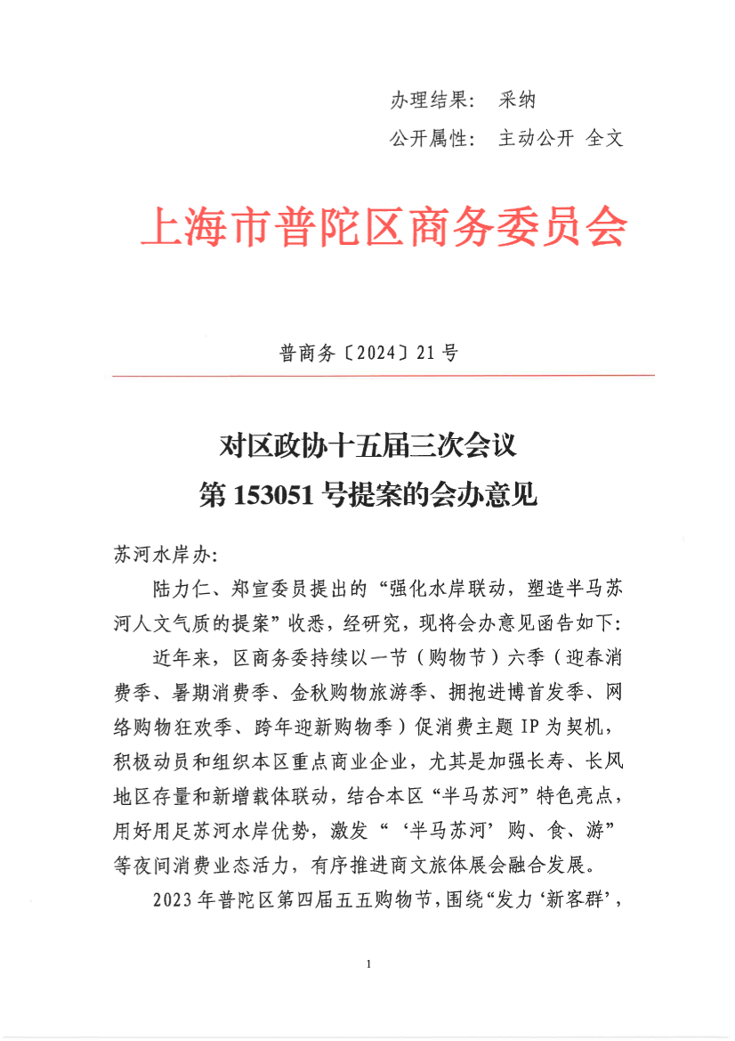 陆力仁、郑宣委员提出的“强化水岸联动,塑造半马苏河人文气质的提案”收悉,经研究,现将会办意见函告如下:
