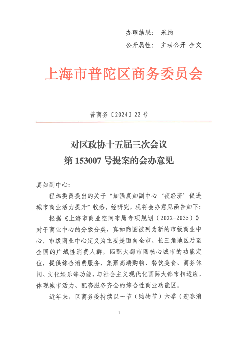 程炜委员提出的关于“加强真如副中心‘夜经济’促进城市商业活力提升”收悉,经研究,现将会办意见函告如下: