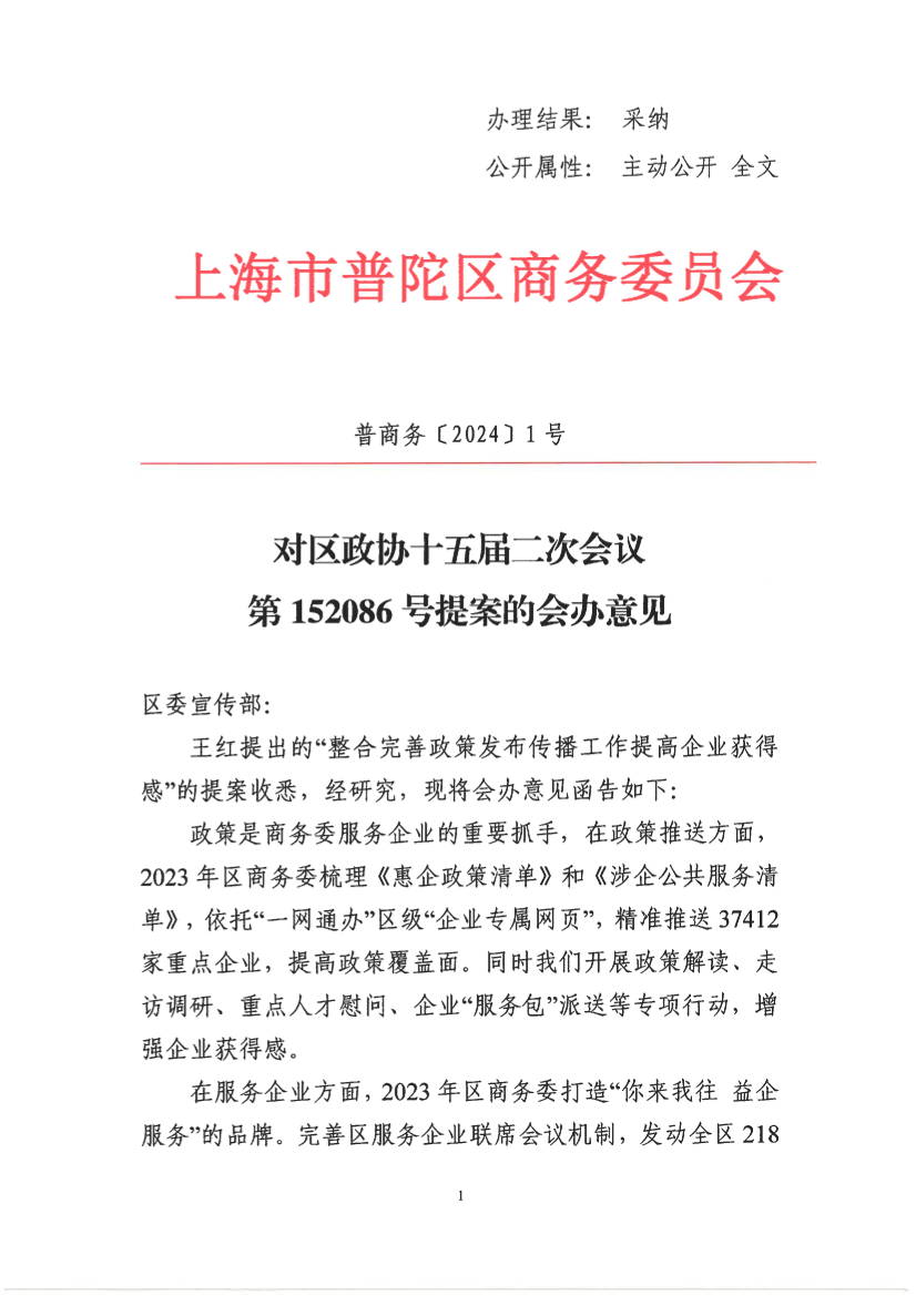 王红提出的“整合完善政策发布传播工作提高企业获得感”的提案收悉,经研究,现将会办意见函告如下: