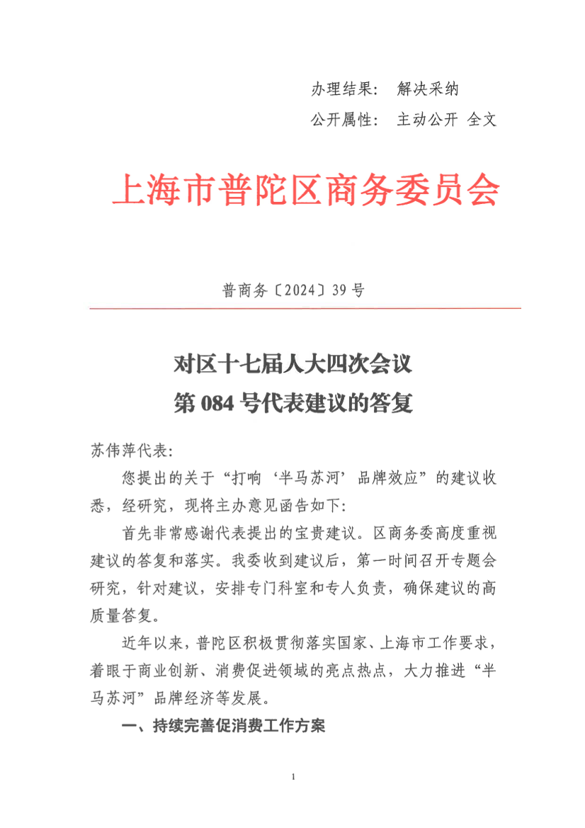 首先非常感谢代表提出的宝贵建议。区商务委高度重视建议的答复和落实。我委收到建议后,第一时间召开专题会研究,针对建议,安排专门科室和专人负责,确保建议的高质量答复。