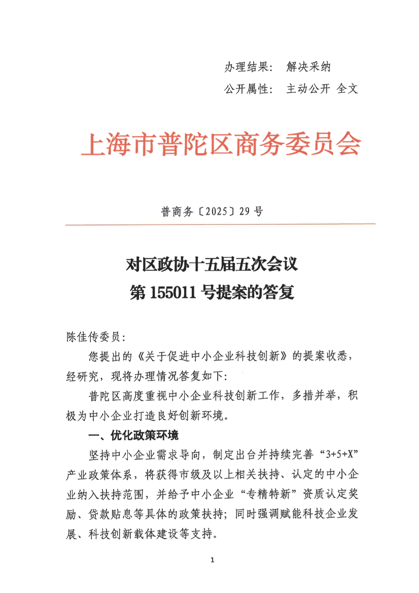 您提出的《关于促进中小企业科技创新》的提案收悉,经研究,现将办理情况答复如下: