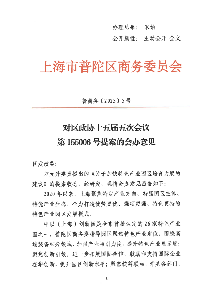 中以(上海)创新园是全市首批认定的26家特色产业园之一,普陀区商务委指导园区聚焦特色产业定位,围绕高端装备细分领域,加强产业招引力度,提升特色产业显示度;聚焦创新引领,进一步拓展国际合作,鼓励和支持国际企业在华创新,提升园区创新水平;聚焦统筹联动,牵头各部门,加强对园区统计工作的指导,提升园区统计人员的专业性与统计工作的时效性、准确性。