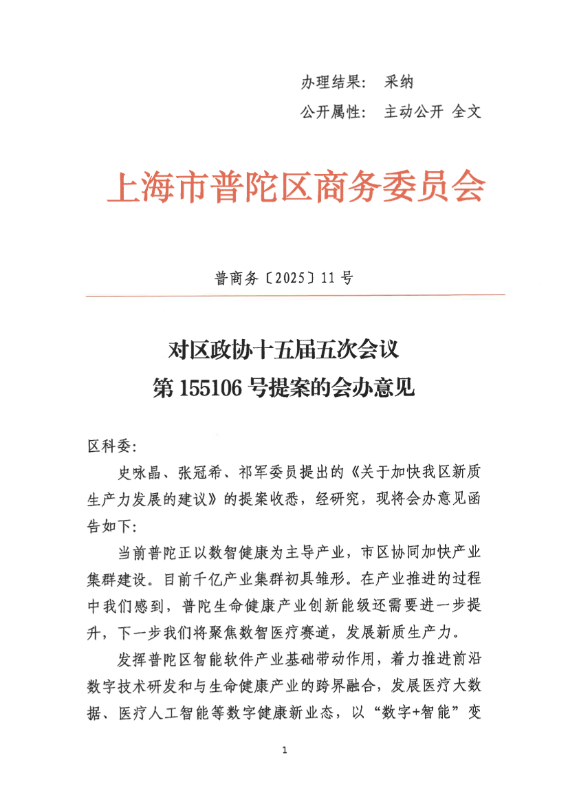 对区政协十五届五次会议第155106号提案的会办意见