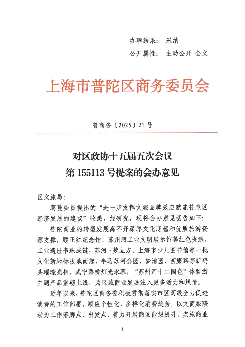 葛蔓委员提出的“进一步发挥文旅品牌效应赋能普陀区经济发展的建议”收悉,经研究,现将会办意见函告如下:
