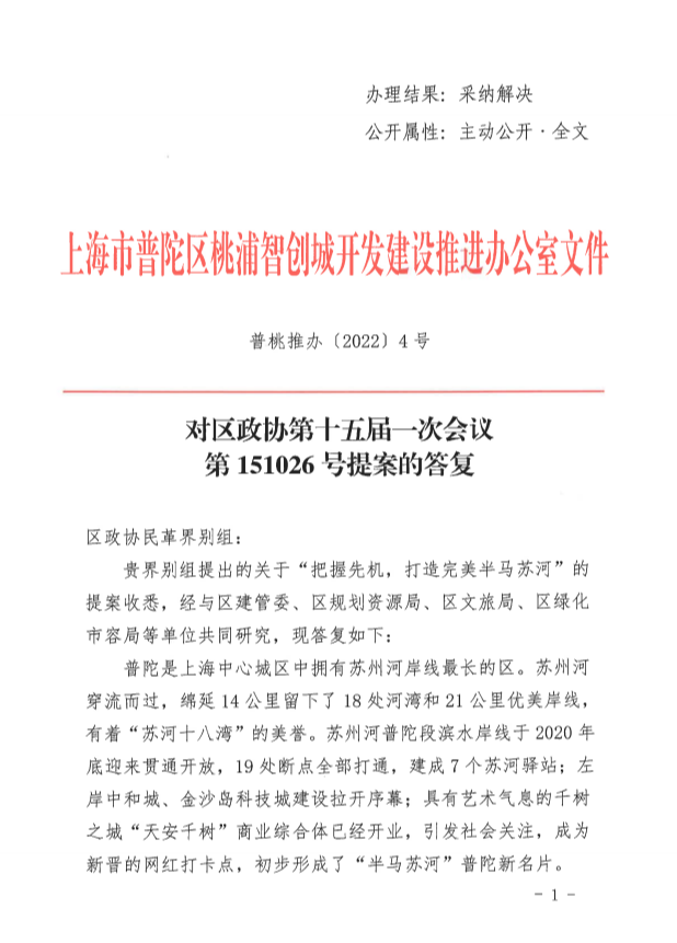 贵界别组提出的关于“把握先机,打造完美半马苏河”的提案收悉,经与区建管委、区规划资源局、区文旅局、区绿化市容局等单位共同研究,现答复如下: